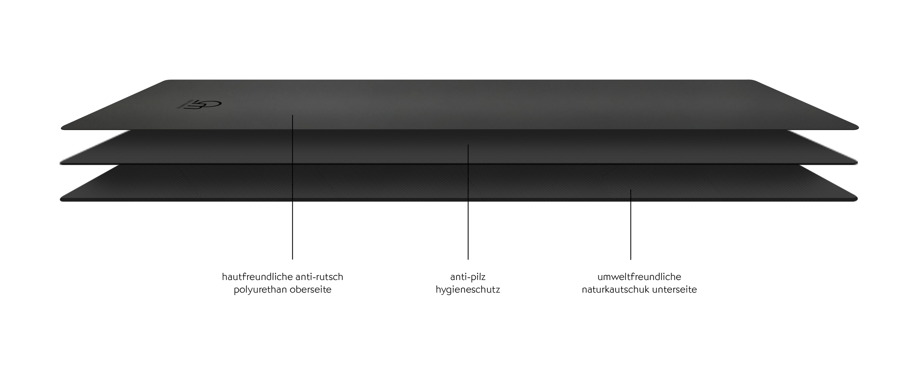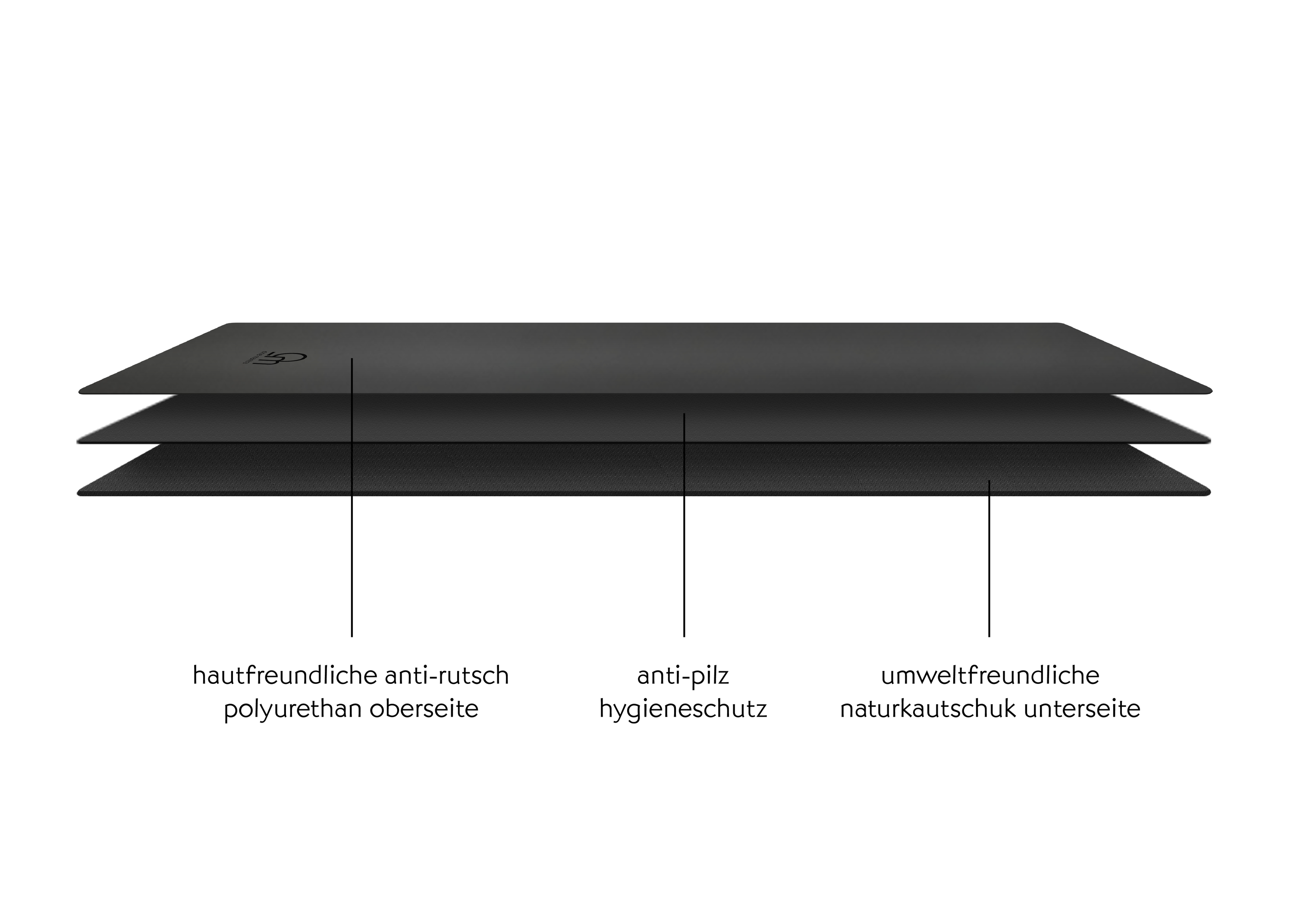 die oberfläche der one mantra yogamatte ist mit einer hautfreundlichen polyurethanbeschichtung versehen. dieses material zeichnet sich nicht nur durch seine hervorragende rutschfestigkeit aus, sondern auch durch seine angenehm weiche haptik. beim downward facing dog, garantiert es absoluten halt, ohne dass hände oder füße auch bei starkem schwitzen wegrutschen. die oberfläche kombiniert weichheit und festigkeit, ideal für jede art von yoga, und sorgt für eine durchgehend sichere und komfortable praxis.