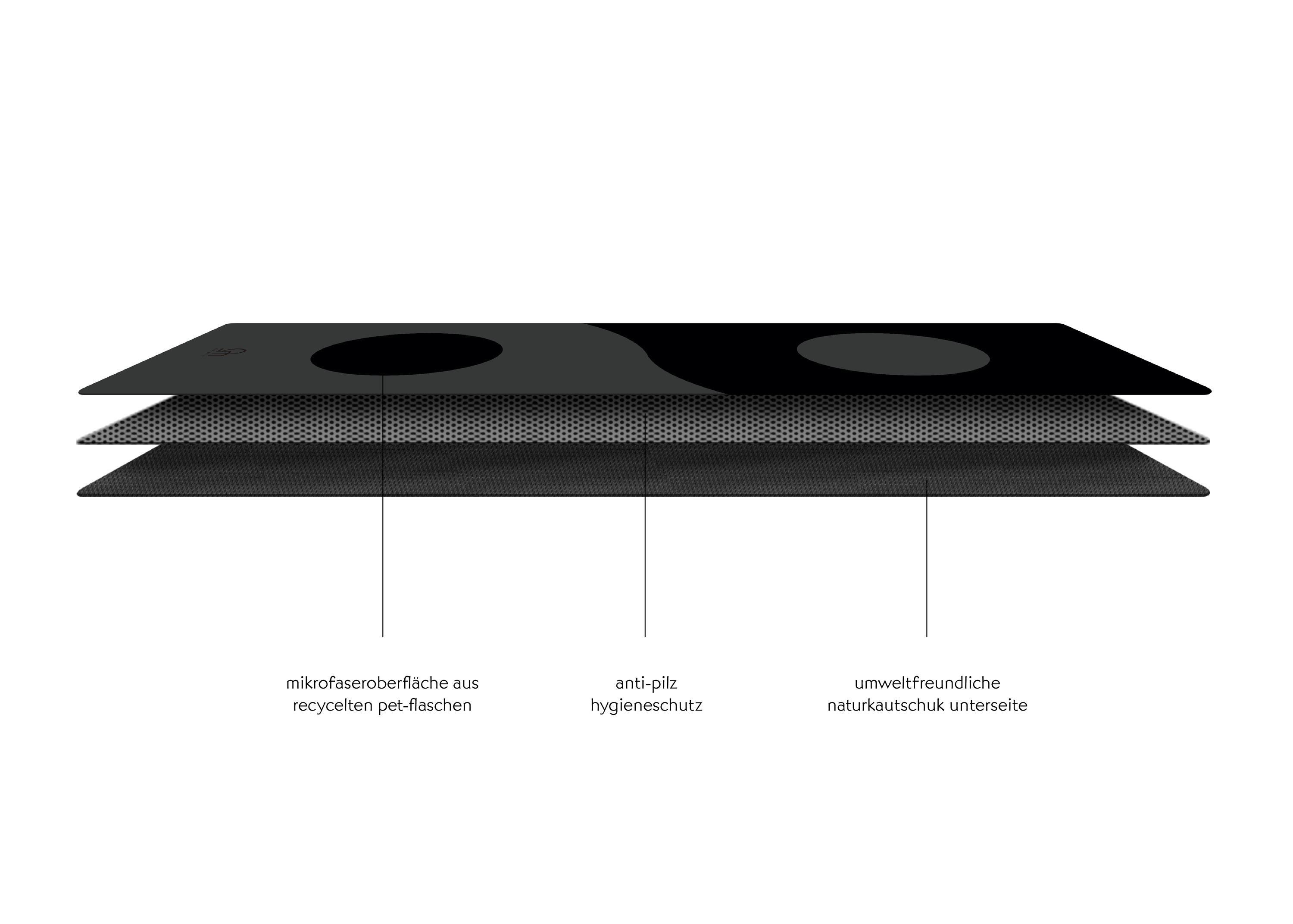 die oberfläche der yogamatte besteht aus mikrofaser. diese ist nicht nur saugfähig und trocknet schnell, sondern verbessert auch den grip, je mehr du schwitzt.